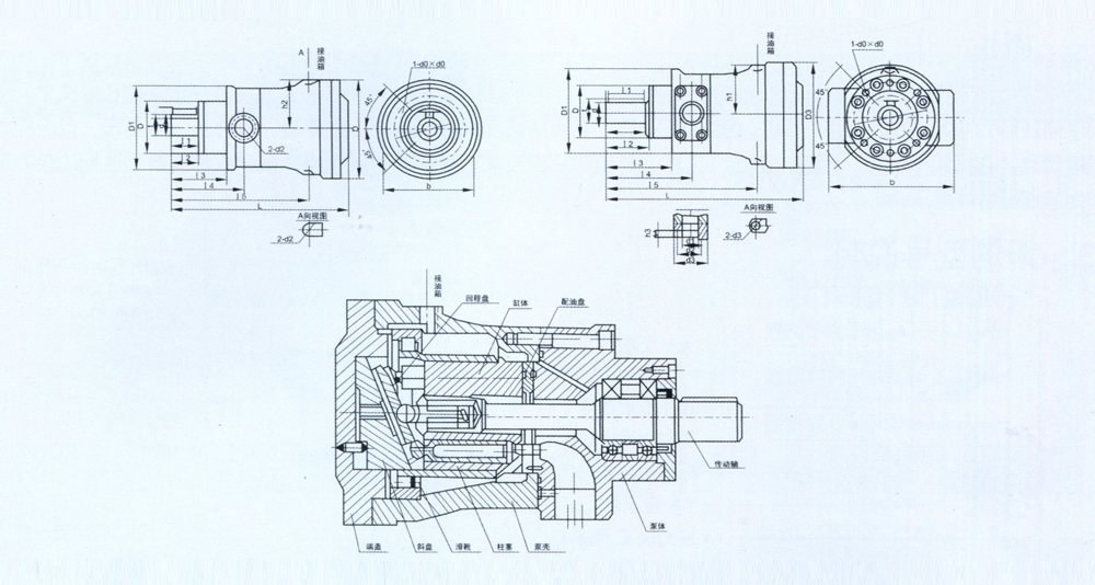 定量機(jī)構(gòu)中斜盤始終固定在定量端蓋上,不能改變柱塞的行程,所以其流量是固定的。該泵只須更換配油盤也可作為油馬達(dá)使用。